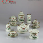 Bộ ấm chén men kem Tròn vẽ Hoa Sen và 4 Phụ kiện