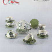 Bộ ấm chén Bát Tràng hết hợp với họa tiết vẽ tay tạo nên nét riêng và độc đáo của dòng sản phẩm ấm chén cao cấp Bát Tràng. Với họa tiết vẽ tay đem lại vẻ đẹp tự nhiên và tinh tế khi pha trà vào chén ta sẽ thấy được sự kết hợp rất ăn ý giữa màu men của bộ ấm chén và màu xanh của trà. Khi sử dụng bạn sẽ thấy hết ưu điểm của dòng sản phẩm cao cấp này: dễ dàng chùi rửa, không bám nước chè, họa tiết đồng điệu từ ấm đến chén